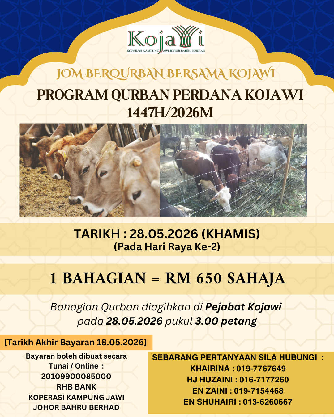 PROGRAM IBADAH QURBAN PERDANA ANGGOTA BERSAMA KOJAWI 2026 BERSAMAAN 1446H